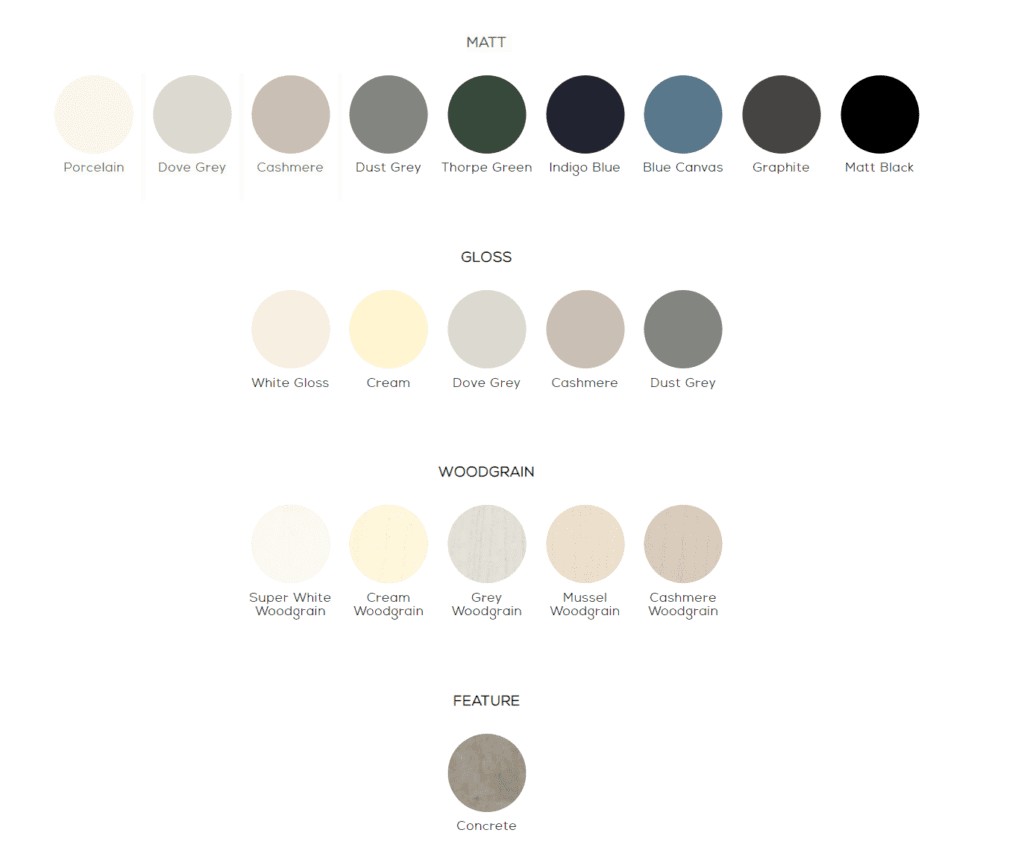 You can pick your finish from Matt, Gloss, Woodgrain and Feature